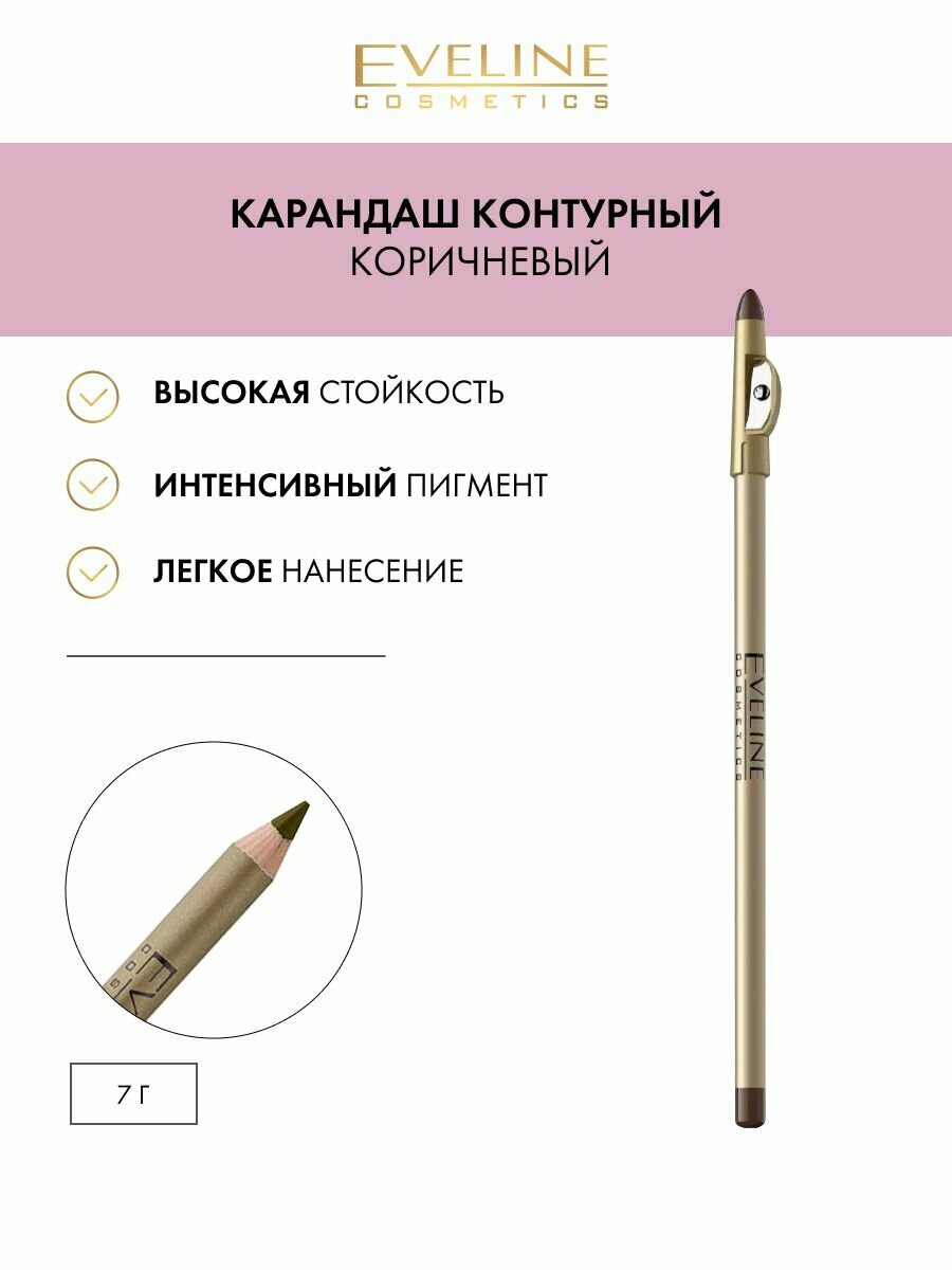 Контурный карандаш для глаз EVELINE с точилкой, brown