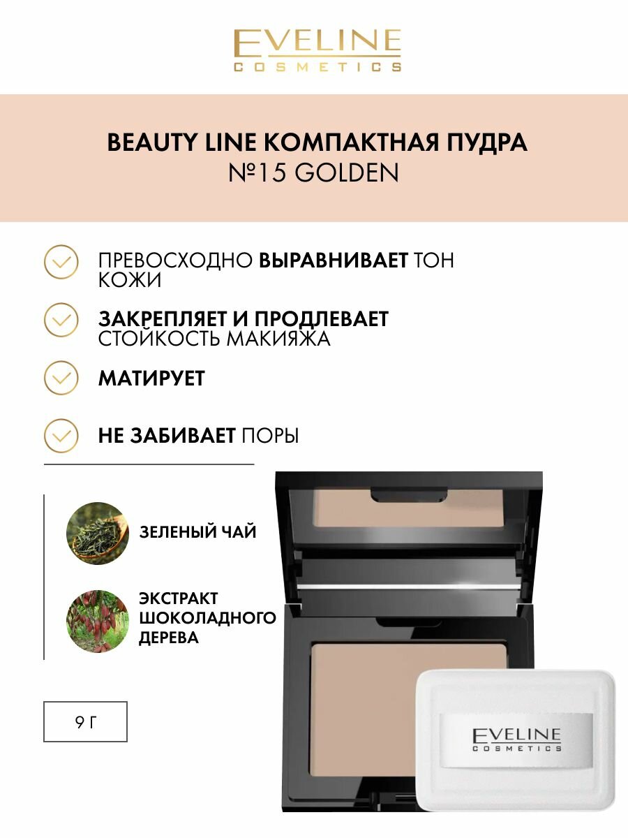 Eveline Beauty Line Компактная пудра для лица 9 г. № 15 golden