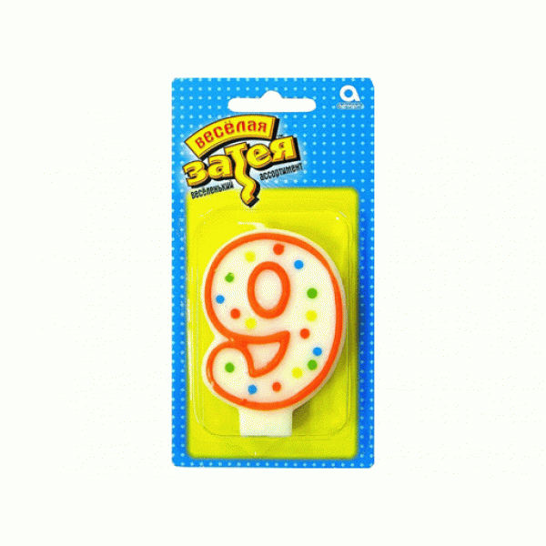 Свечи для торта, Весёлая затея, Свеча-цифра 9
