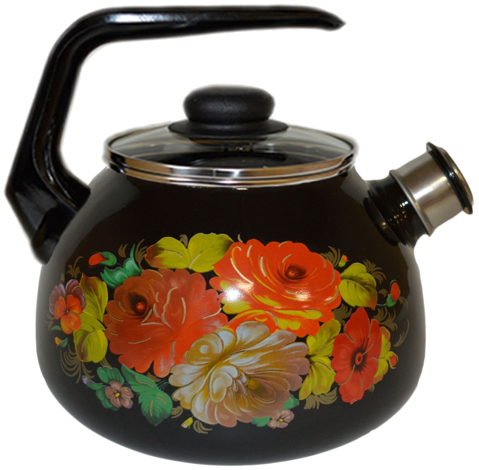 Купить Чайник стальэмаль 3,0л сфер. со свист. Жостово черн.