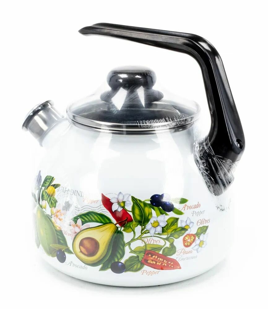 Чайник эмалированный со свистком СтальЭмаль Вкусный компот, 3 л