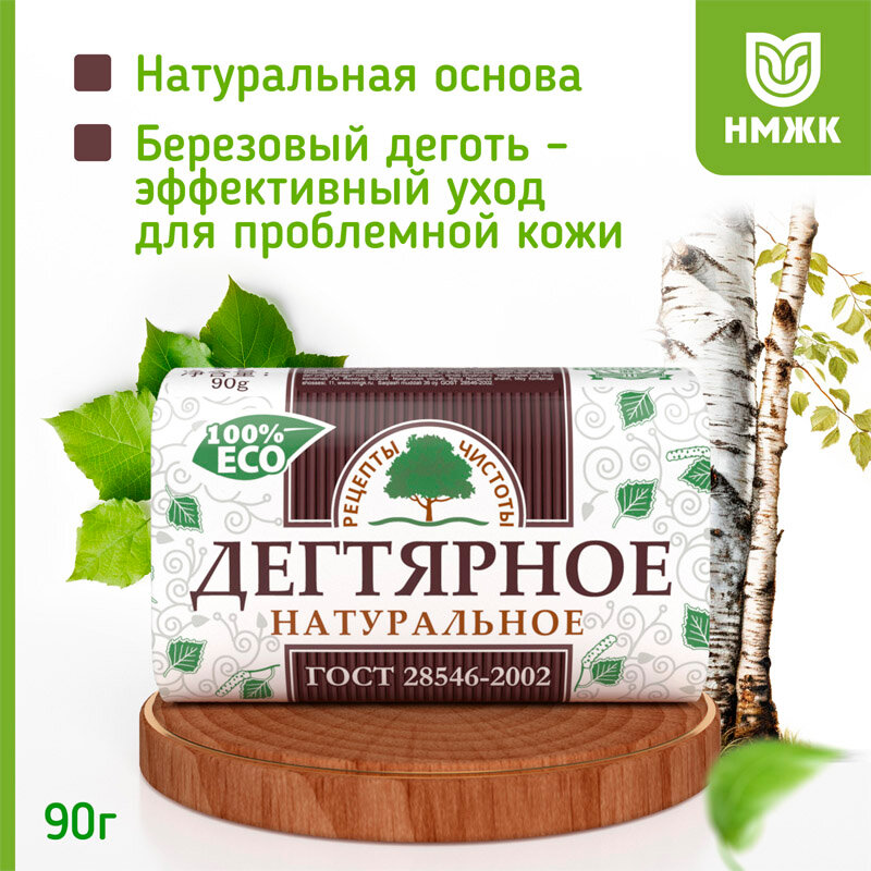 Мыло твёрдое нмжк Рецепты чистоты 90г Дегтярное натуральное