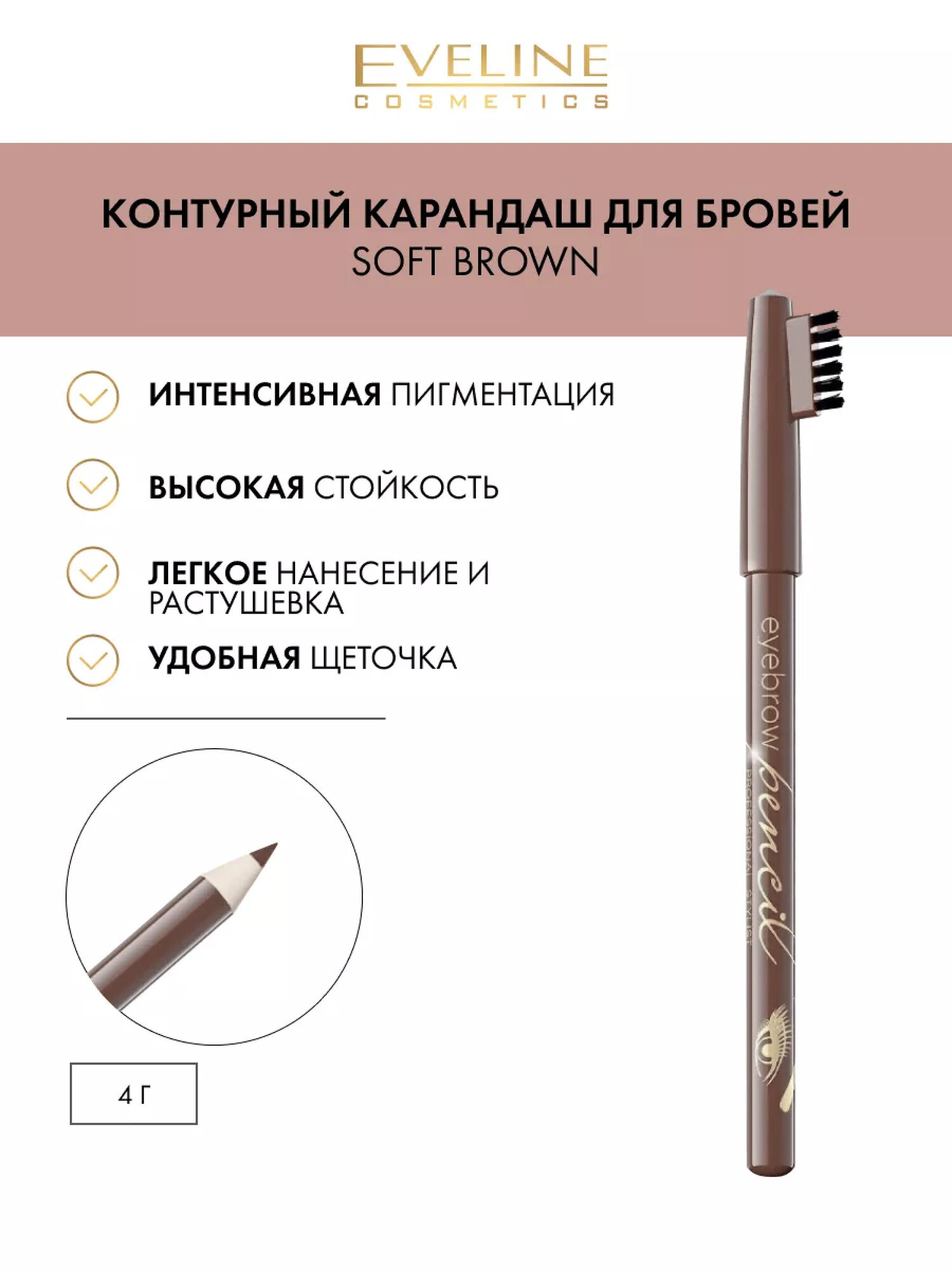 EVELINE Карандаш для бровей Eyebrow Pencil контурный, 5 г, Soft Brown