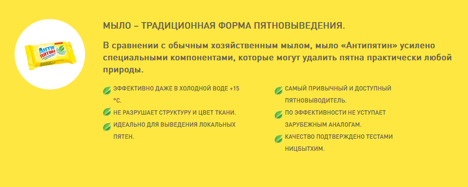 | Плюсы: | единственное мыло, которое реально отстирывает пятна |