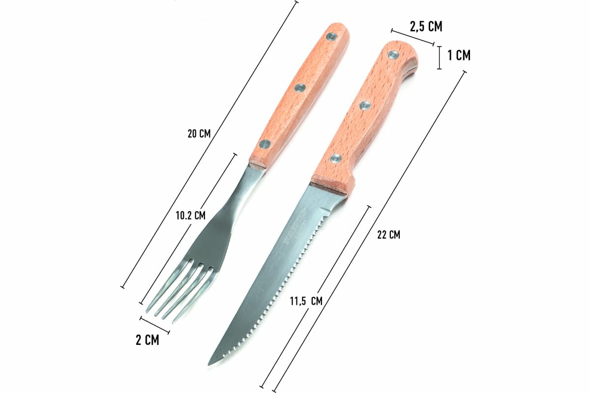 Набор столовых предметов на 4 персоны с деревянными ручками для гриля (4 ножа и 4 вилки) FORESTER C827