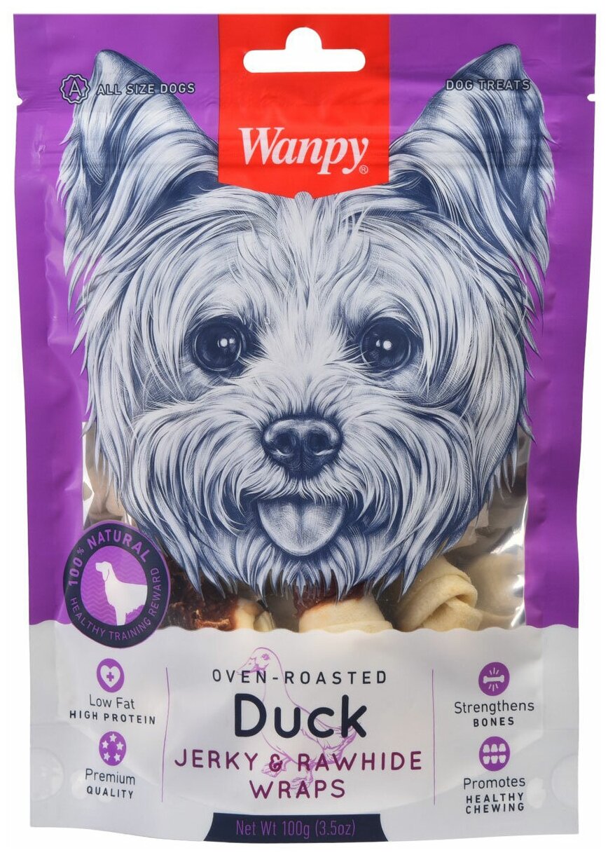 Wanpy лакомство для взрослых собак всех пород, кости из сыромятной кожи с утиным мясом 100 гр