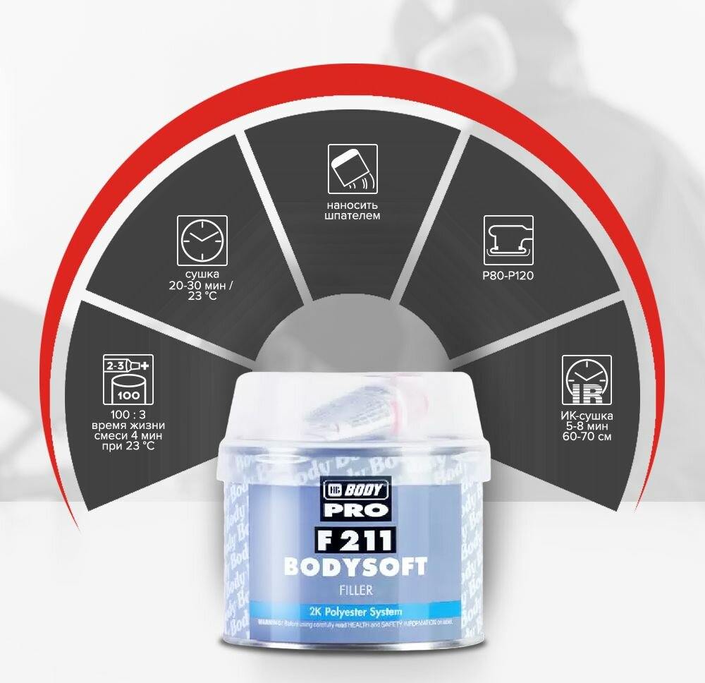 BODY Шпатлевка BODY PRO F211 BODYSOFT c отвердителем 380 г 2112300050