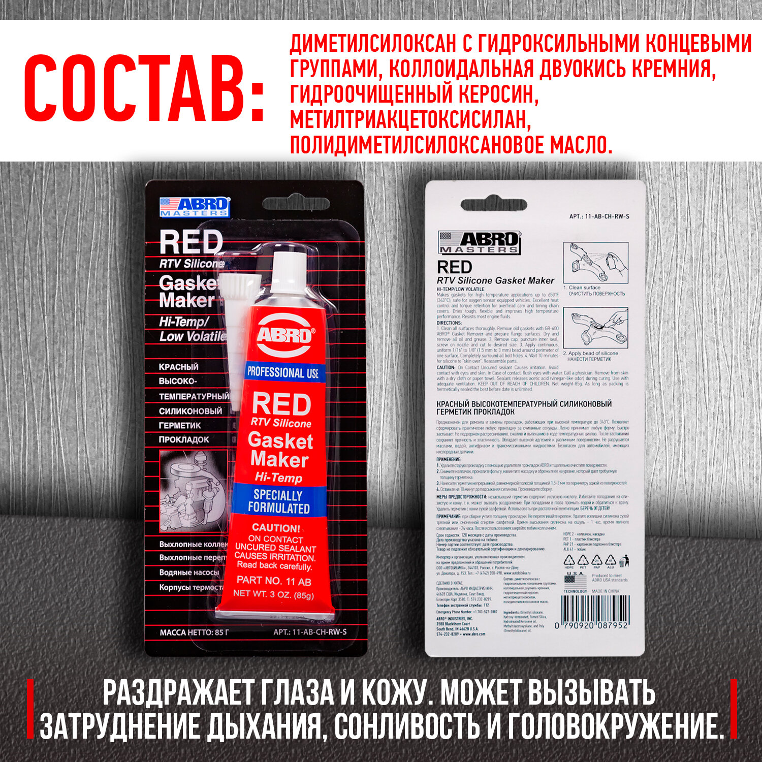11-Ab-Ch-Rw-S_герметик Прокладок! Красный 85гр Abro Masters (Узкий Блистер) ABRO арт. 11ABCHRWS