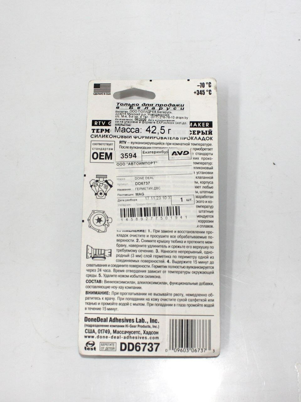 СохранитьГерметик прокладка серый термостойкий 42.5г, DD6737, DONE DEAL интересное: