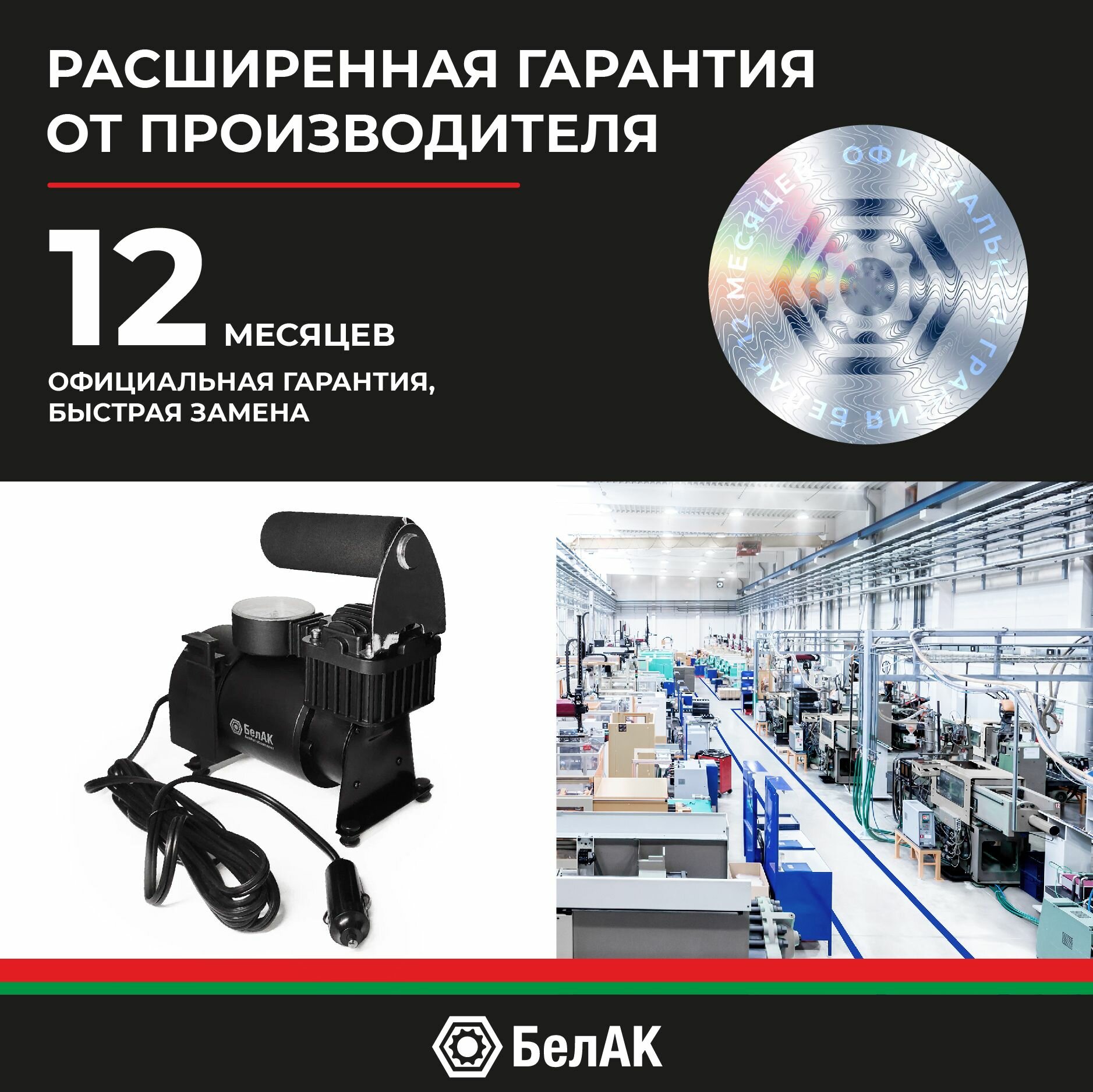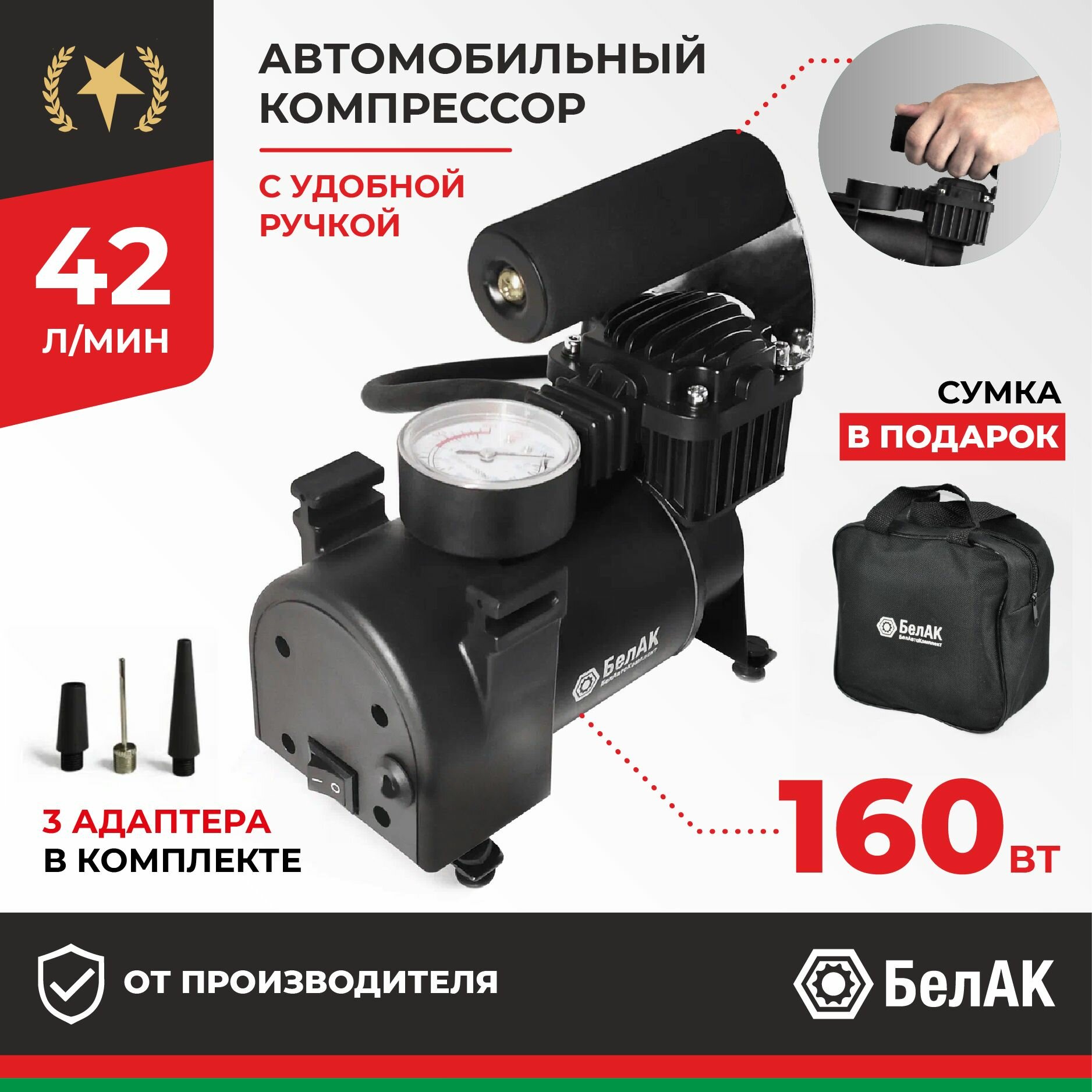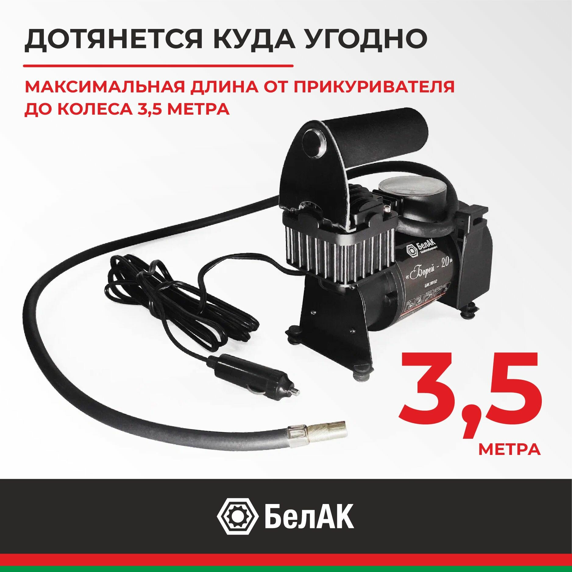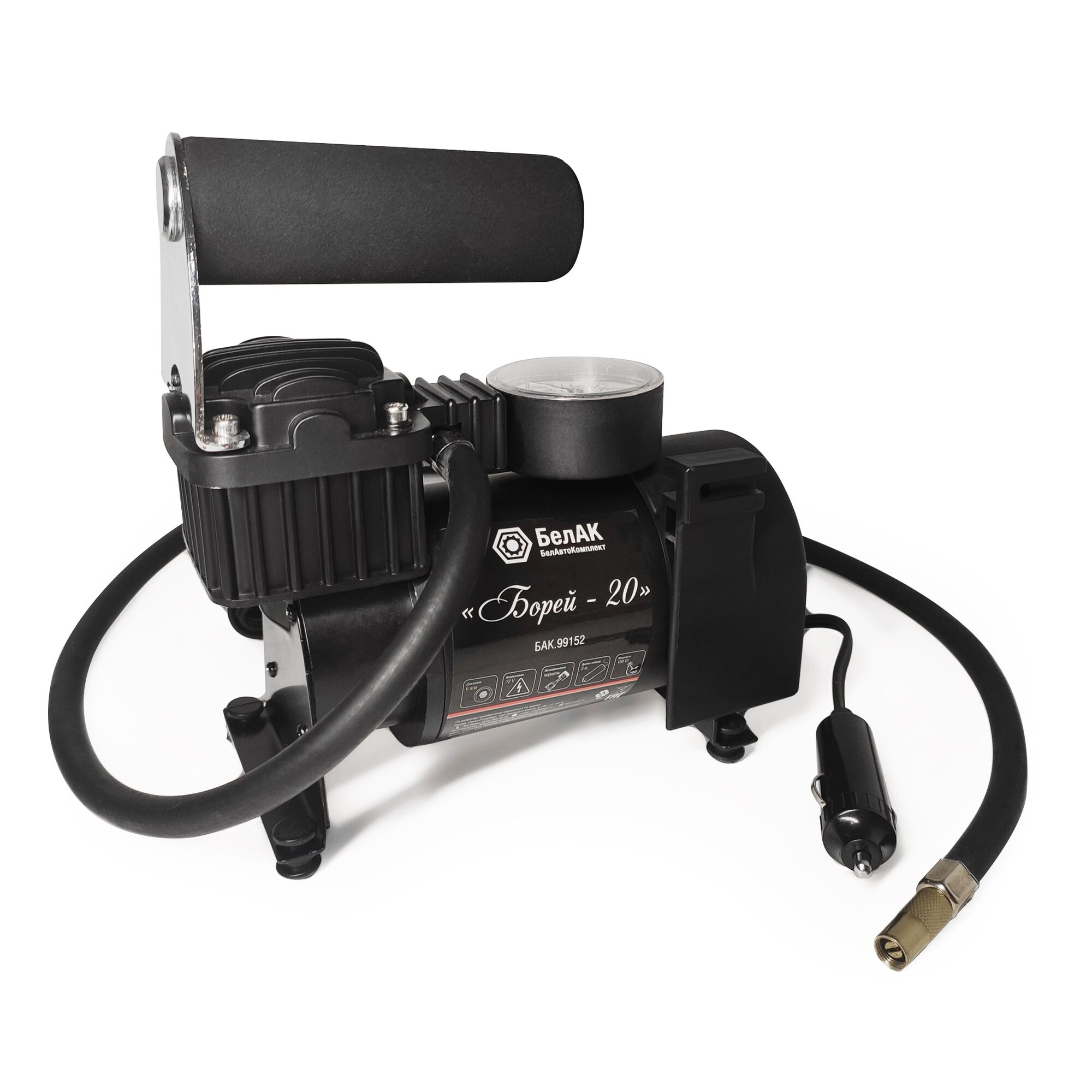 Белавтокомплект БАК99152 Компрессор для накачки шин "Борей-20" 12V 42 л/мин."БелАК"