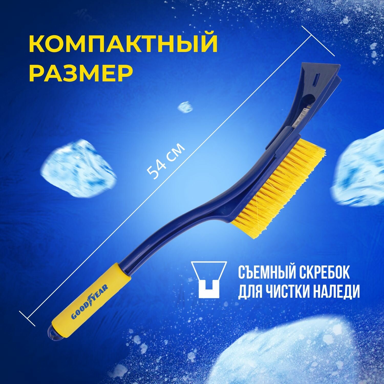 Щетка для снега GOODYEAR WB-04, со съемным скребком, 55см