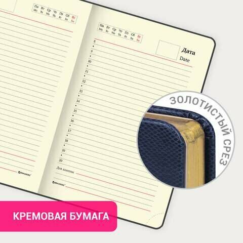 СохранитьЕжедневник недатированный А6 Brauberg Iguana (160 листов) обложка кожзам под кожу, синий (114467) интересное: