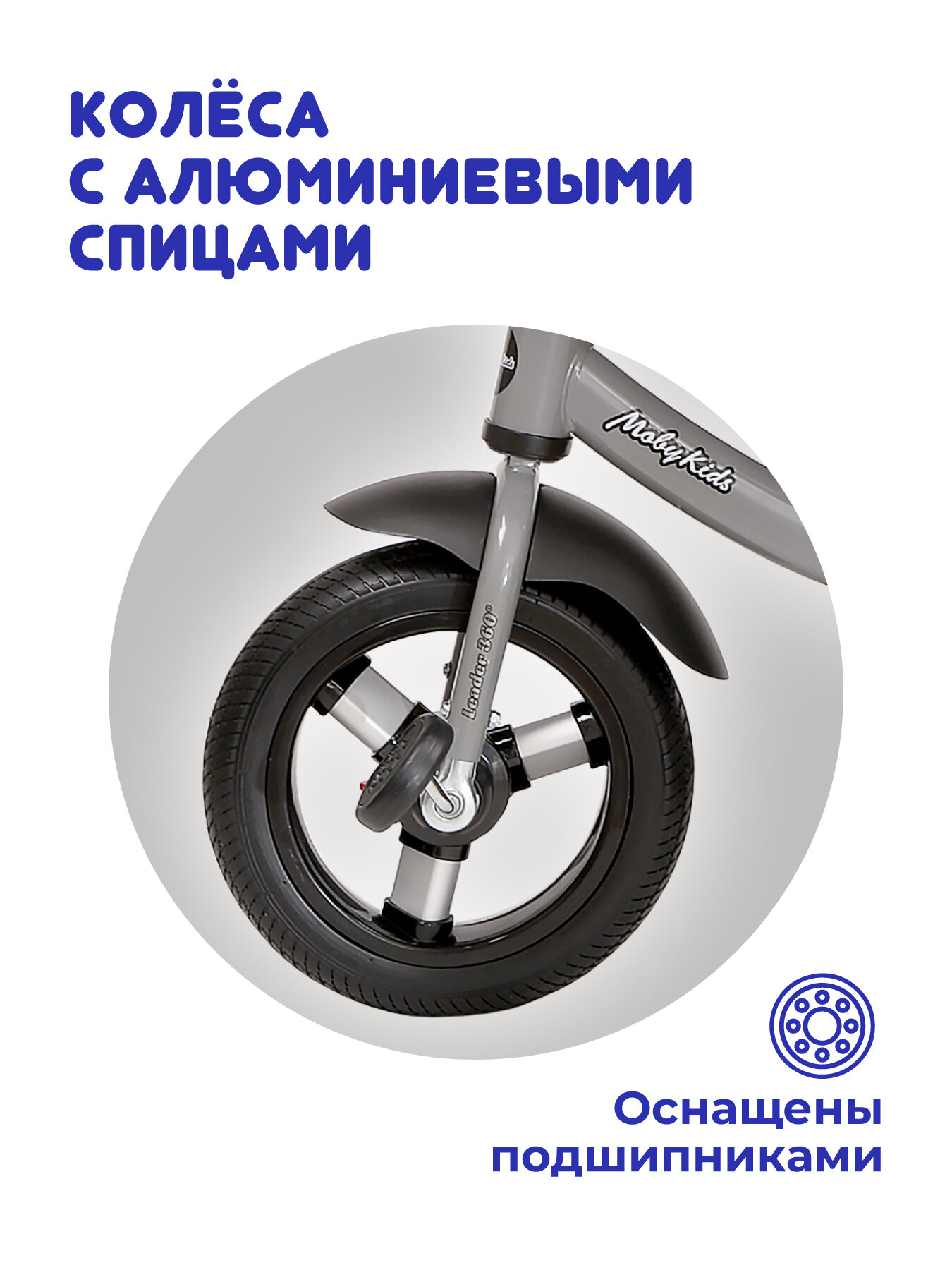Трехколесный велосипед Moby Kids New Leader 360° 12x10 AIR Car, графит