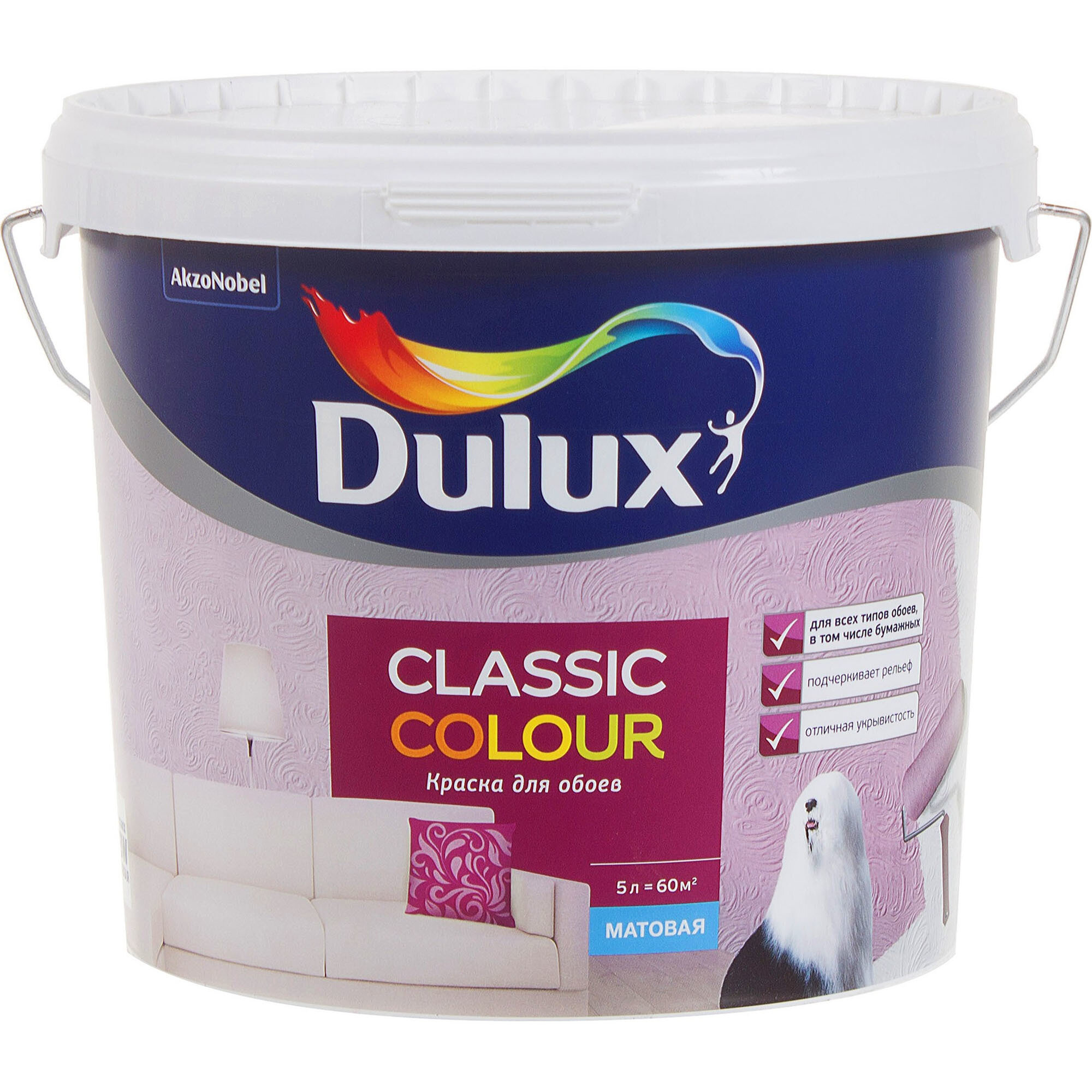 Краска акриловая Dulux Classic Colour для обоев моющаяся матовая белый 5 л