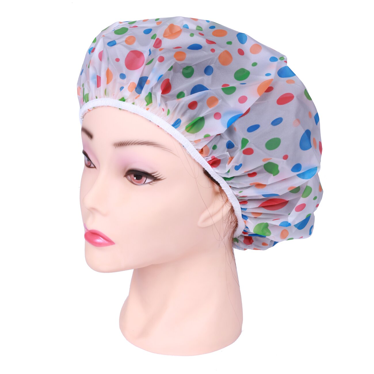 Шапочка для душа без кружева, белая с цветным горохом