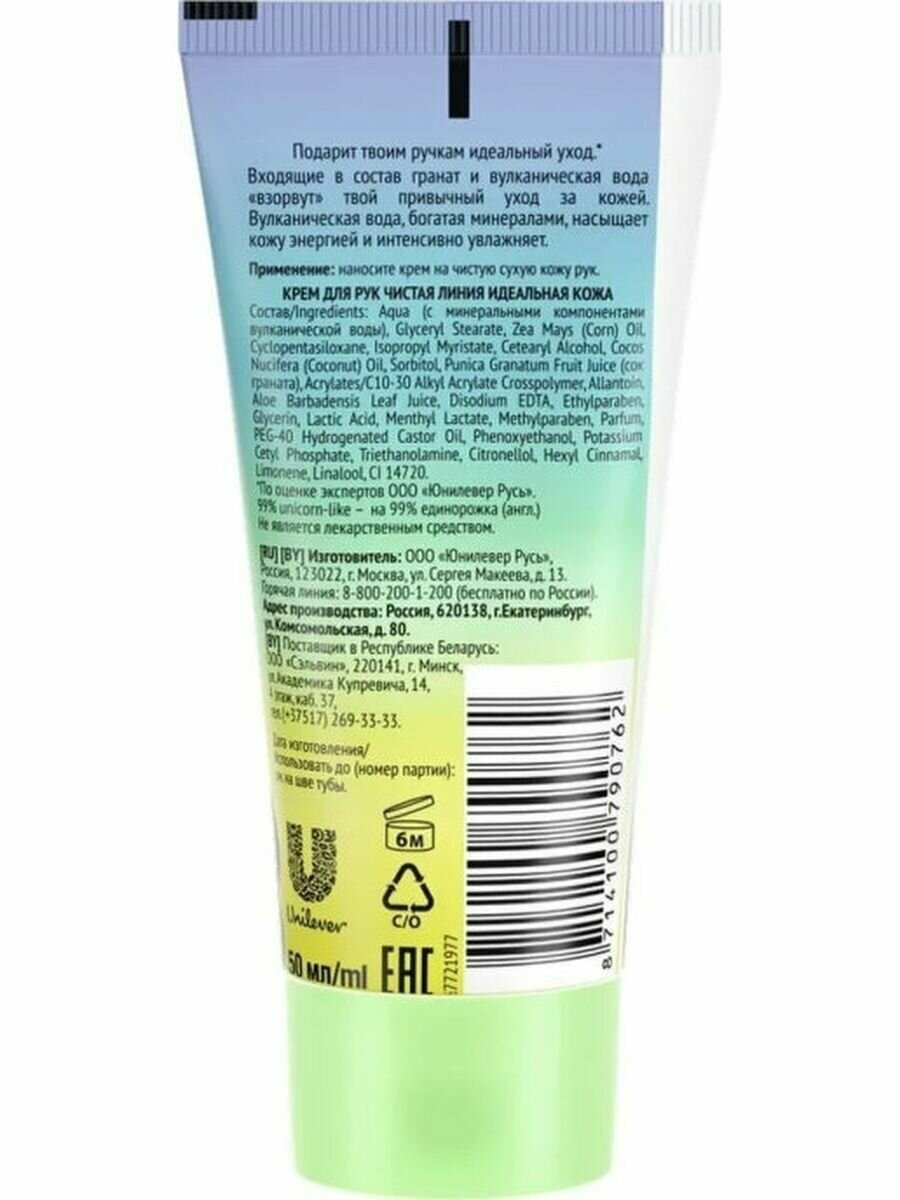Крем для рук чистая линия Идеальная кожа, с гранатом, 50 мл