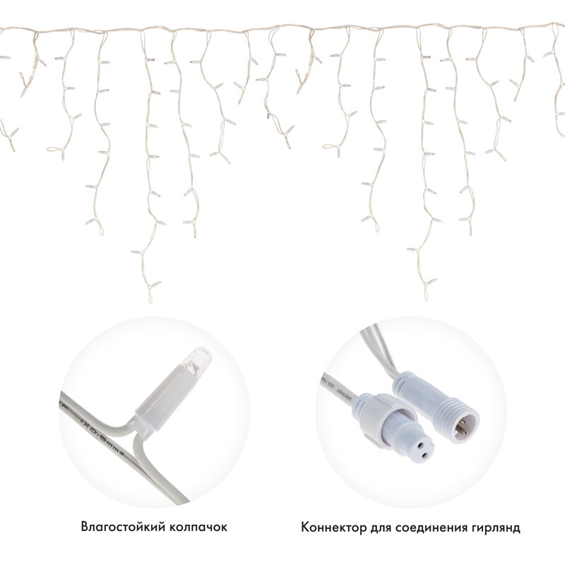 Гирлянда Neon-Night «Айсикл» (бахрома) светодиодный, 5,6 х 0,9 м, ч/п "каучук", 230 В, диоды теплый белый, 240 LED NEON-NIGHT 255-246