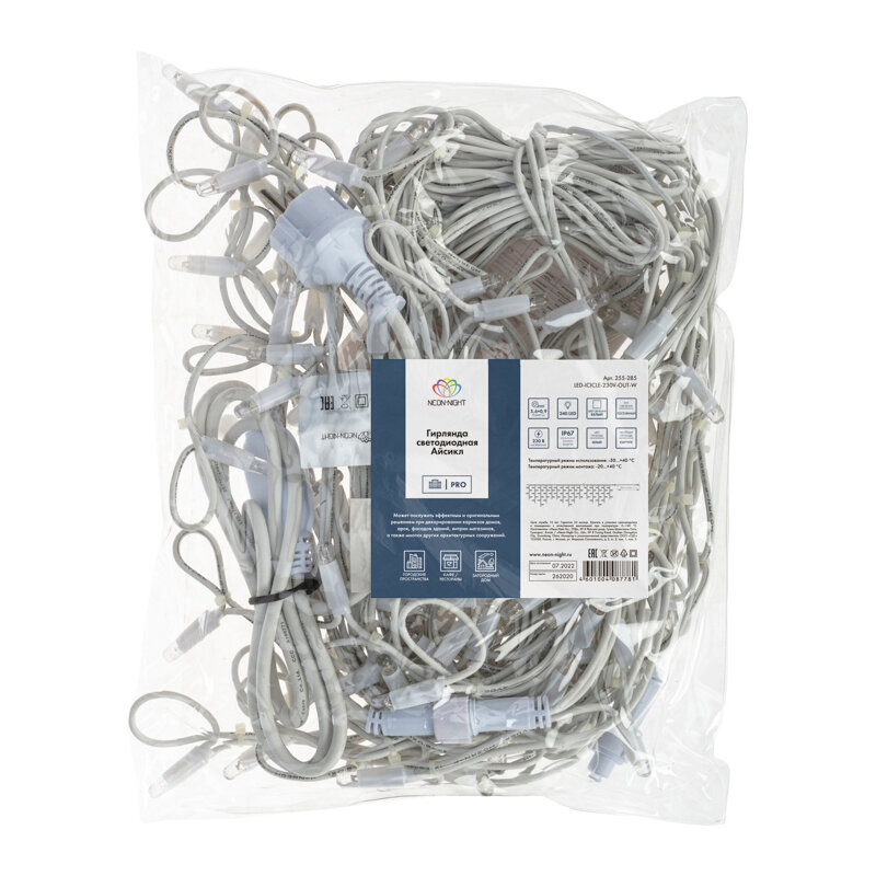 Купить Гирлянда Neon-Night 255-285 Айсикл светодиодный, 5,6 х 0,9 м, белый провод "каучук", 230 В, диоды белые, 240 LED