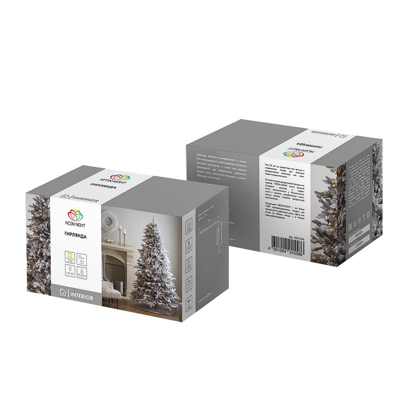 Электрогирлянда новогодняя NEON-NIGHT 303-186, 10 м, 80 ламп, теплый белый