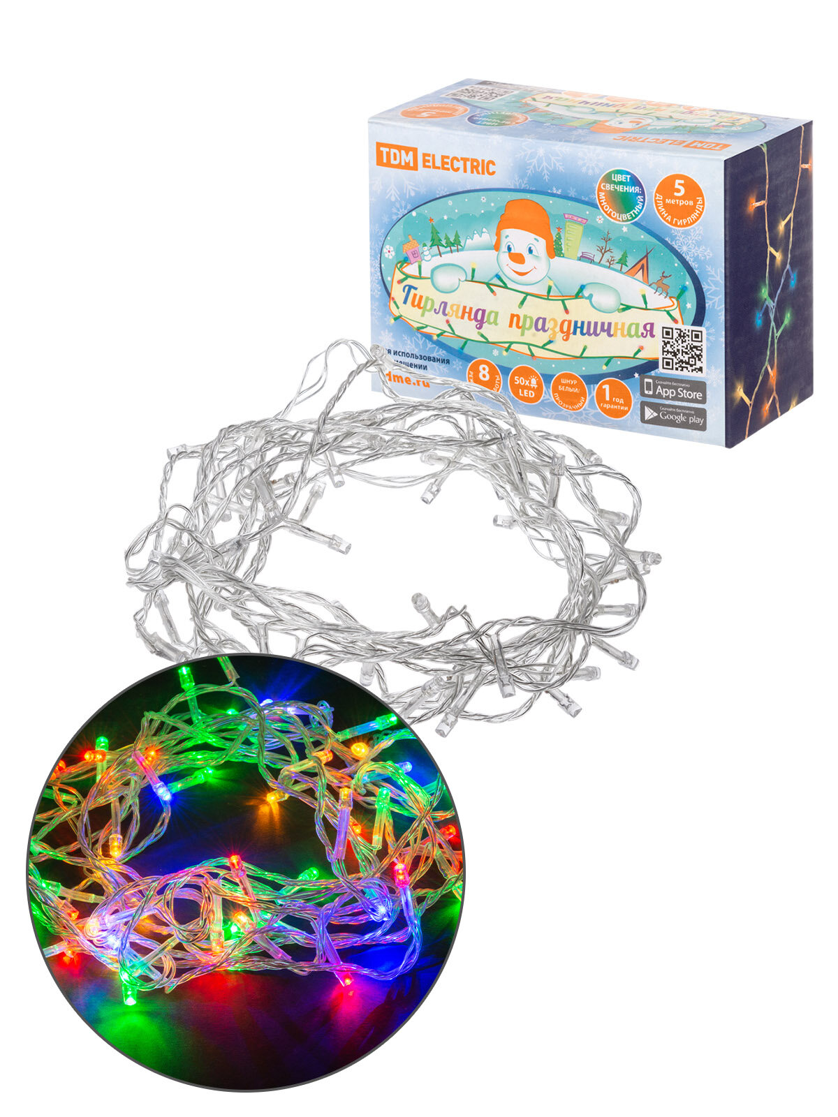 Светодиодная гирлянда TDM ELECTRIC светодиодная СГ50M5, многоцвет., 5м, 8 режимов, 250 В