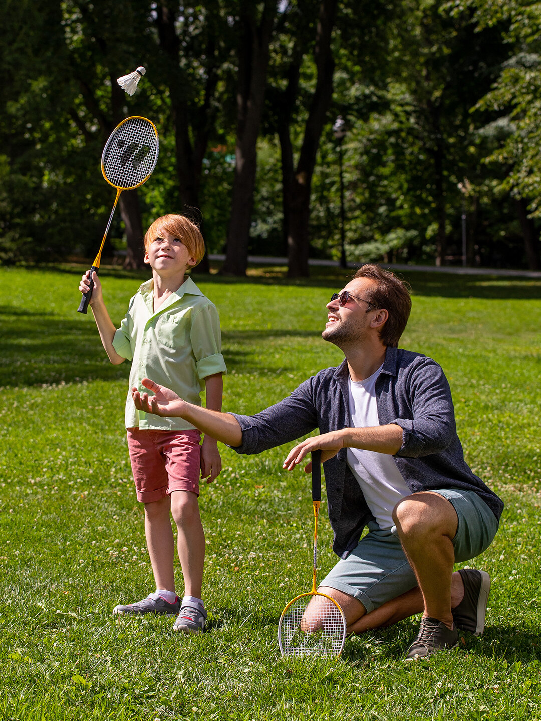 | Плюсы: | очень удобные и в меру лёгкие ракетки, красивые, отличный баланс. Для нас (играть семьёй на лужайке) идеально |