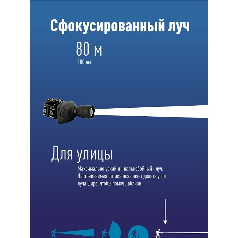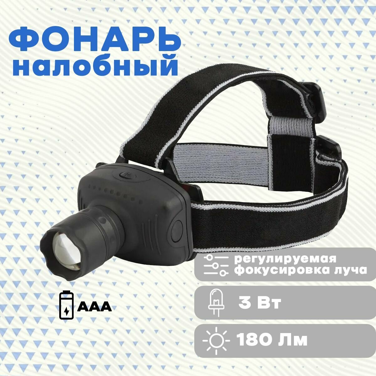Налобный фонарь Космос KOC-H3W-LED, с фокусирующей линзой, 3 режима работы, регулируемый угол наклона, батарейки 3хААА входят в комплект