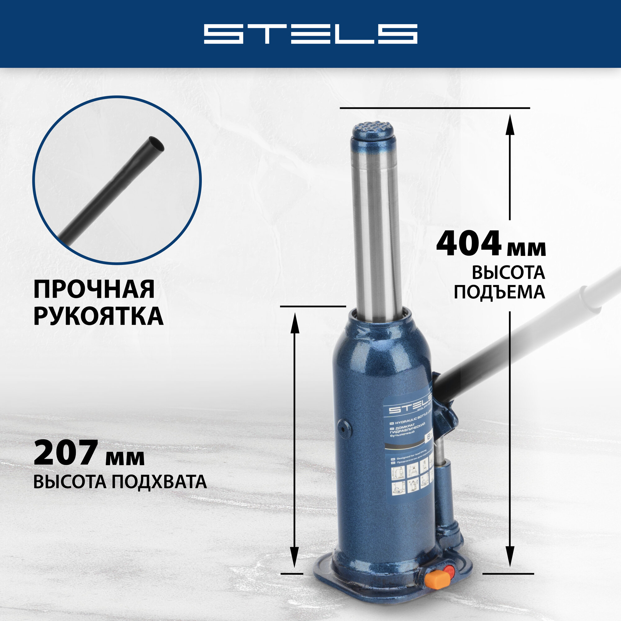 Купить Домкрат гидравлический бутылочный, 6 т, h подъема 207-404 мм, в пластиковом кейсе Stels STELS
