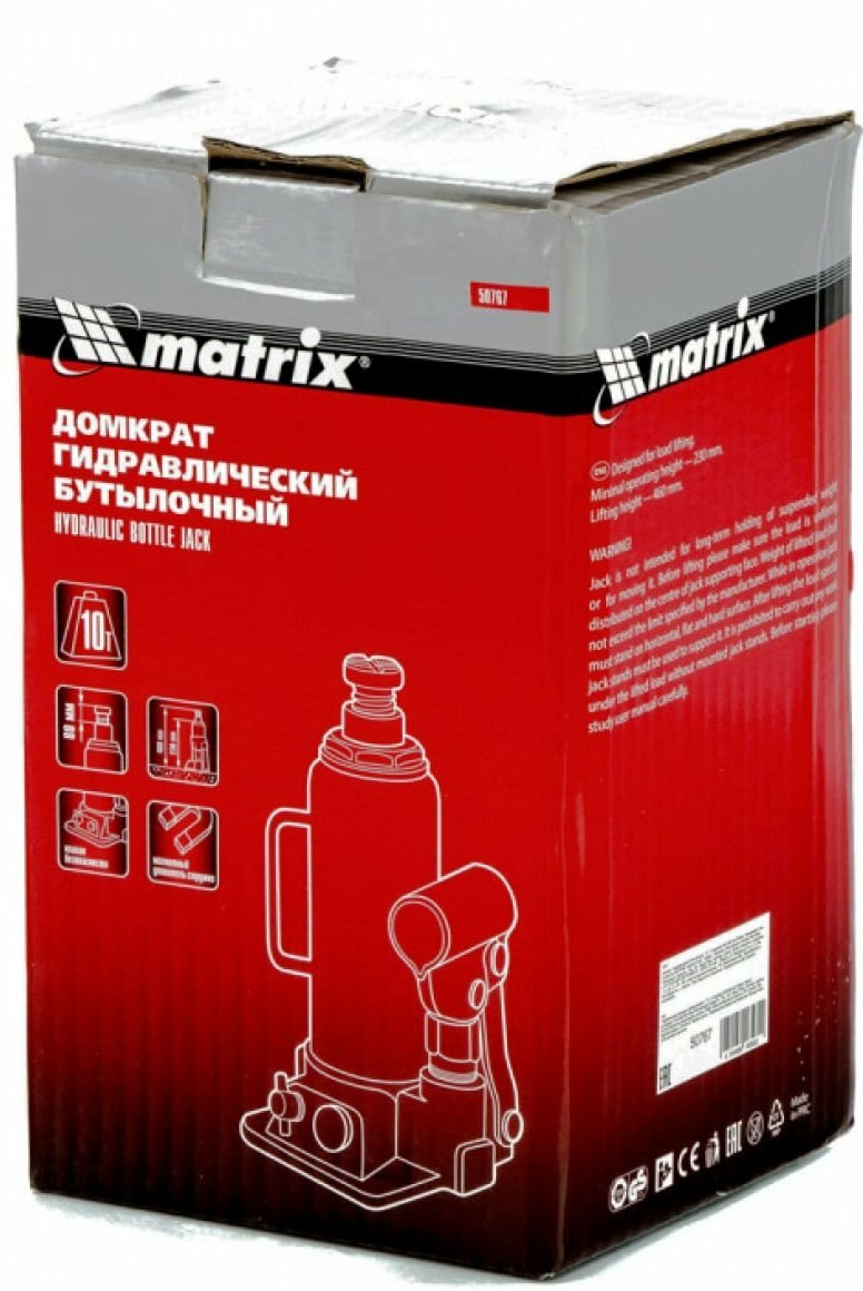Ниже Вы можете прочитать отзывы на Домкрат гидравлический бутылочный Matrix 10 т, h подъема 230-460 мм 50767, ознакомится с подробными характеристиками, посмотреть интересные обзоры и фотографии на Домкрат гидравлический бутылочный Matrix 10 т, h подъема 230-460 мм 50767.