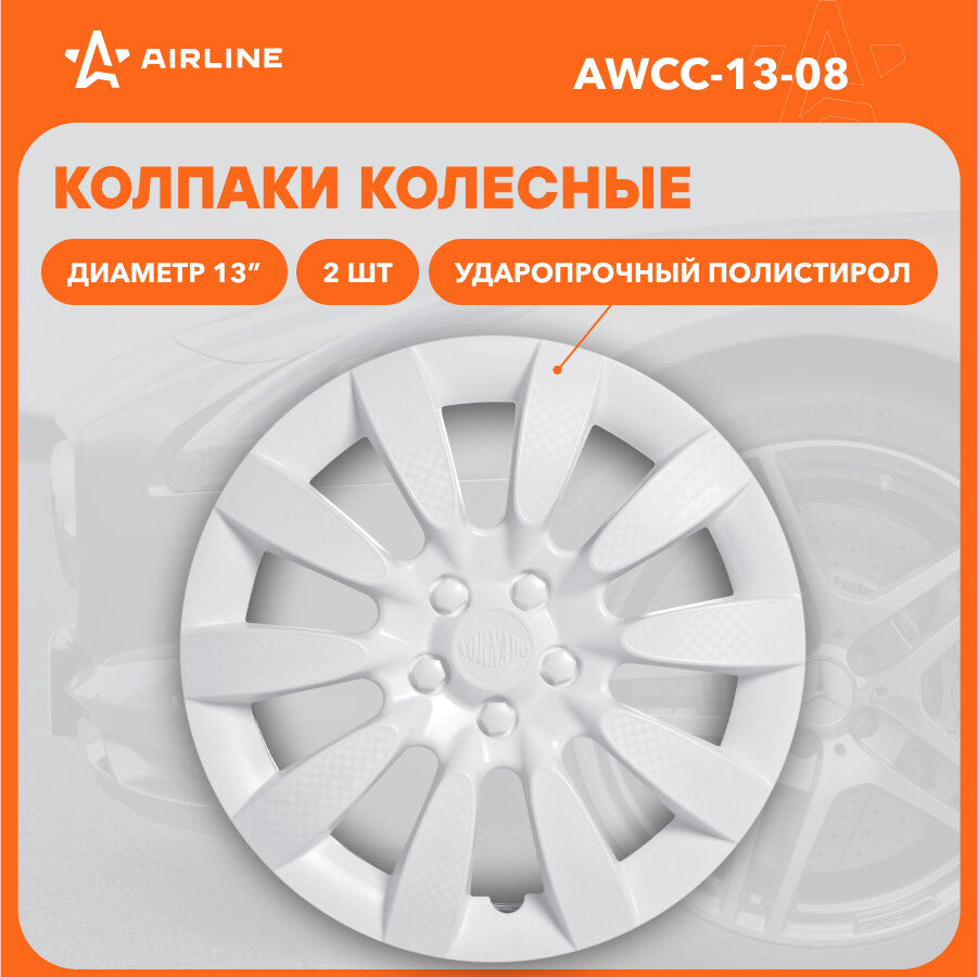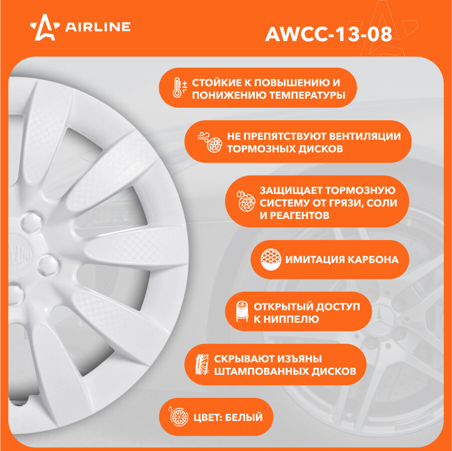 AIRLINE AWCC-13-08 Колпаки колесные 13 Торнадо , белый, карбон, компл. 2 шт.
