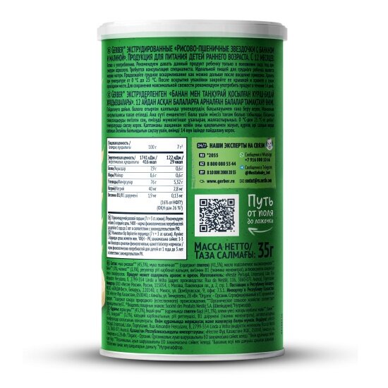 GERBER Звездочки Рисово-Пшеничные Банан Малина {с 12 мес} 35г