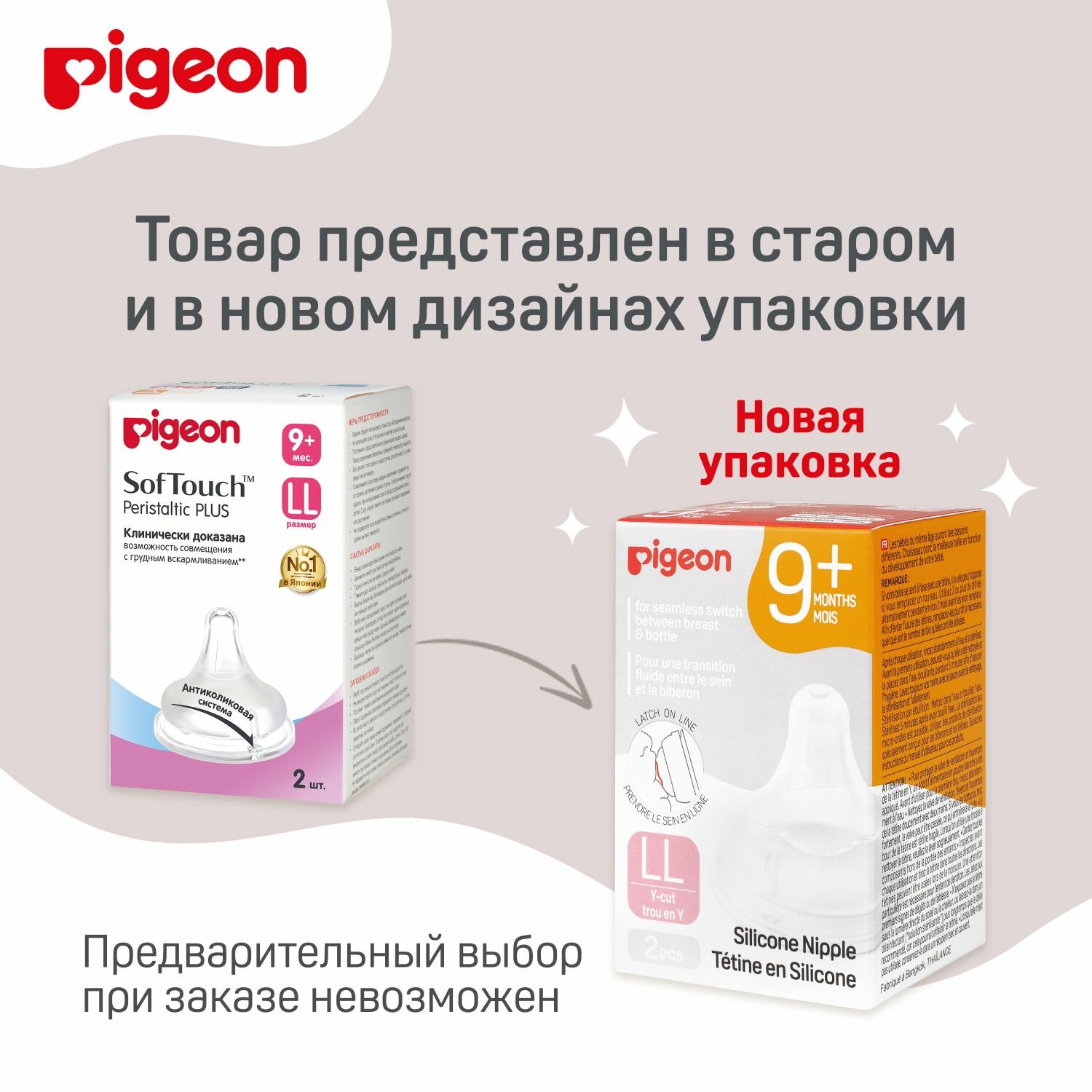 Соска из силикона PIGEON для бутылочки для кормления SofTouch Peristaltic PLUS, отверст.LL (9+мес.), 2 шт