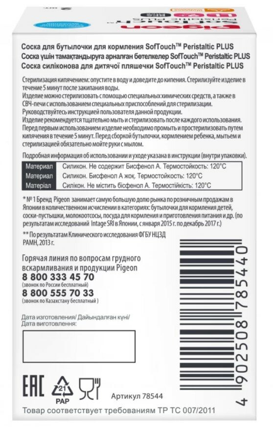Pigeon Соска SofTouch Peristaltic Plus, размер LL (9+мес.), 2шт, силикон , мод. 78544