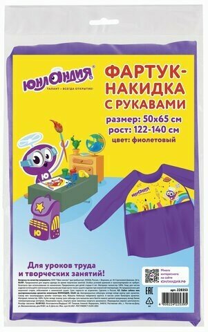 СохранитьФартук для труда и занятий творчеством Юнландия с рукавами, 50*65 см, фиолетовый (228353) интересное: