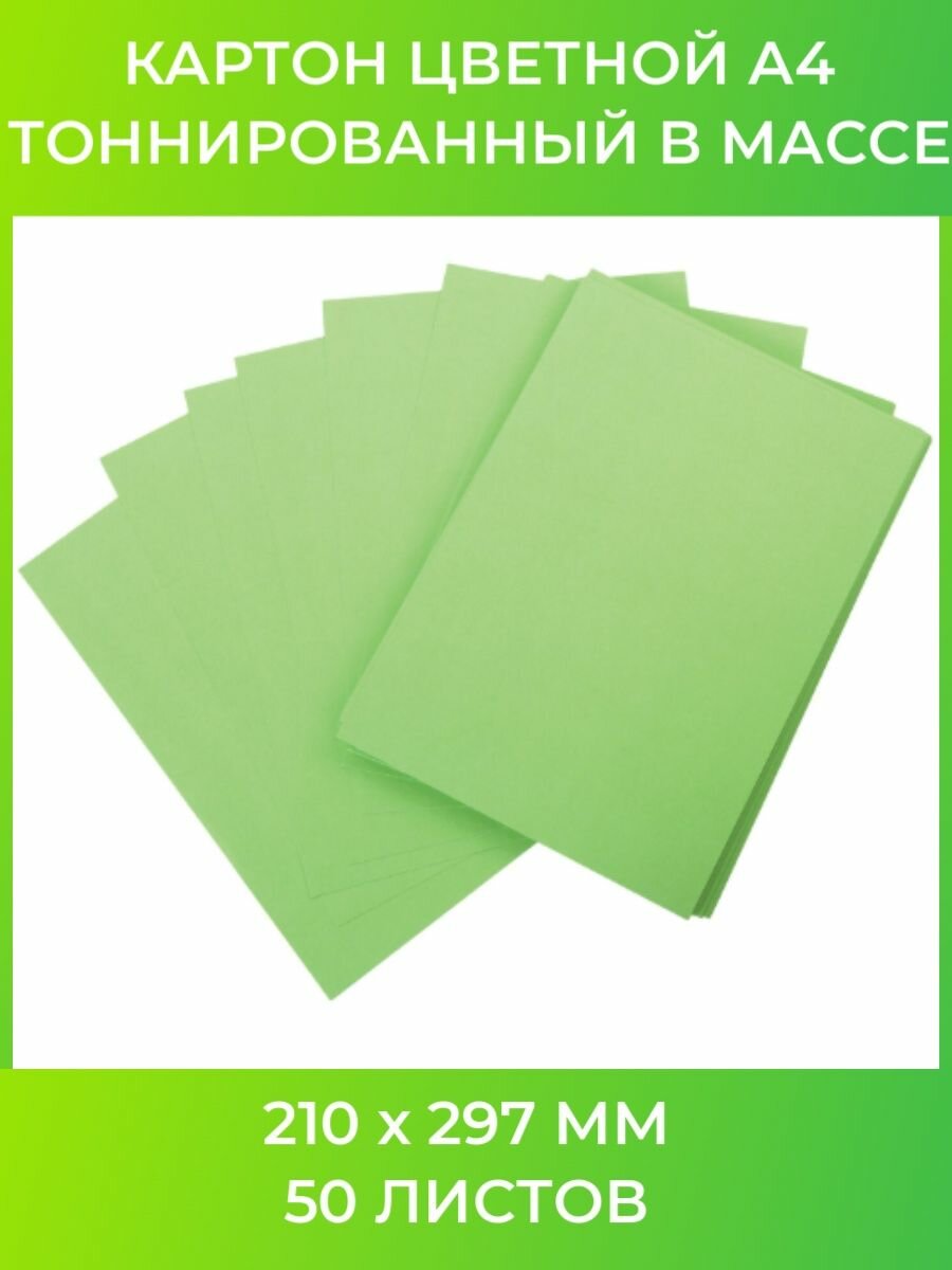 Картон цветной А4 тонированный В массе, 50 листов, зеленый, 220 г/м2, B-B, 210×297 мм, 128984