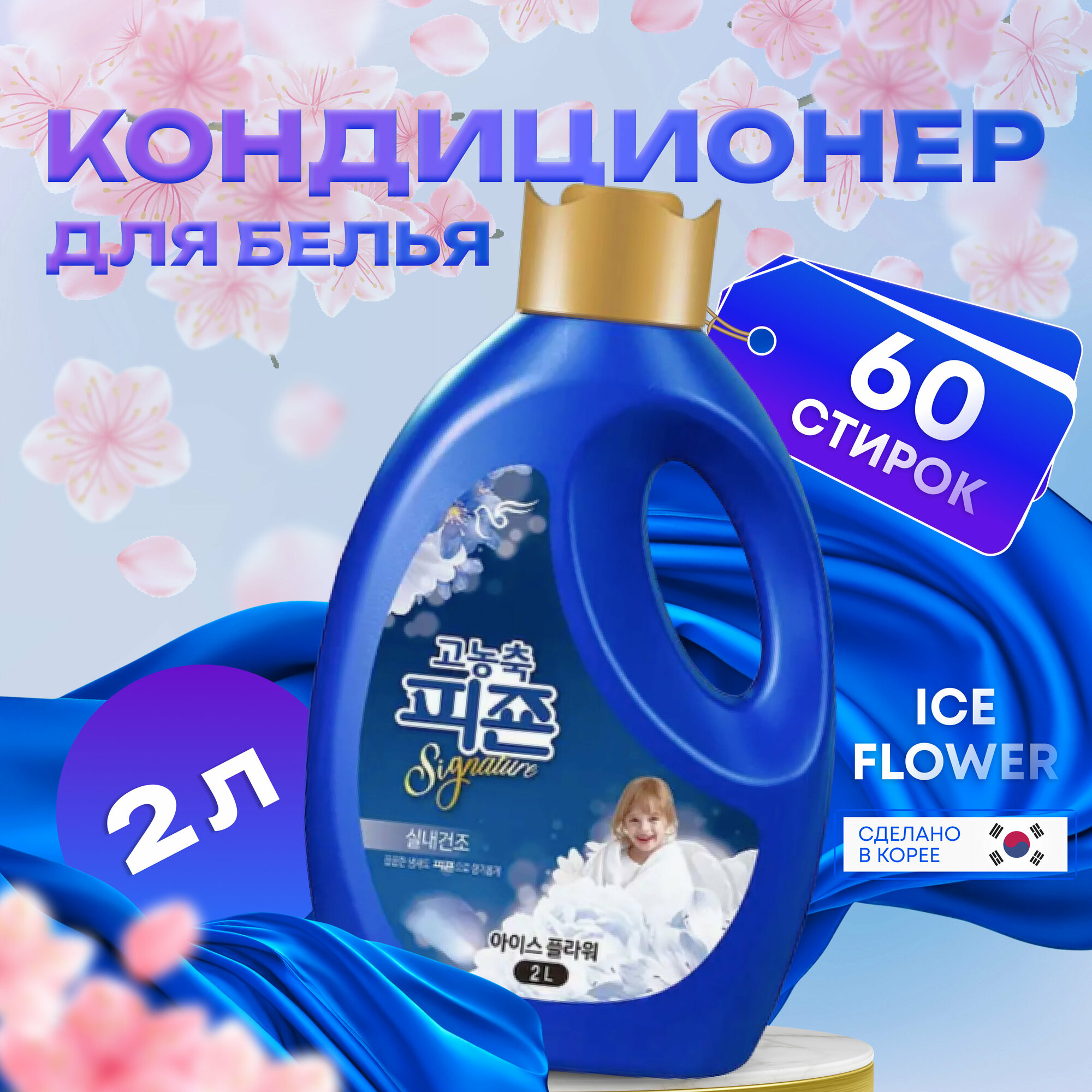 Купить Кондиционер суперконцентрированный для белья, формула с аромакапсулами, Ice Flower, ополаскиватель для белья Pigeon Corporation 2000 мл