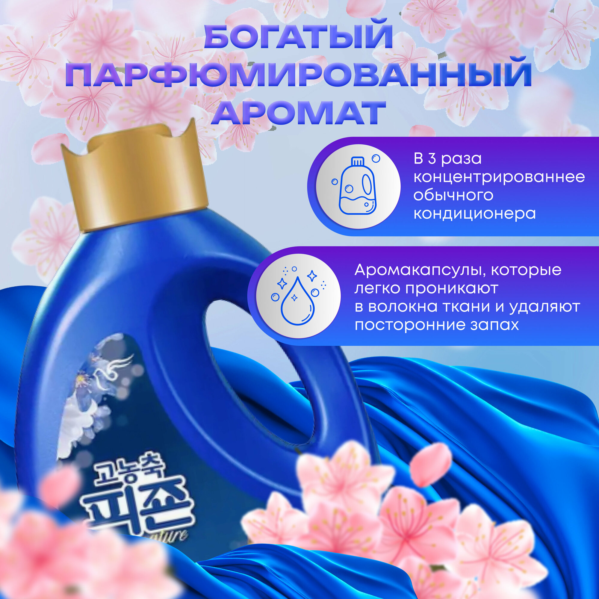 Кондиционер суперконцентрированный для белья Pigeon Corporation формула с аромакапсулами Ice Flower 1000 мл / Корейская бытовая химия, кондиционер для стирки одежды