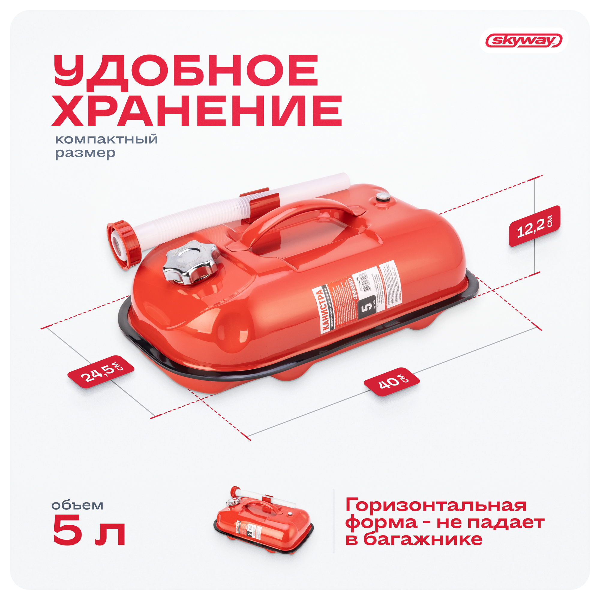 Канистра металлическая SKYWAY 5л горизонтальная Антикоррозийное фосфатированное покрытие, S02601004