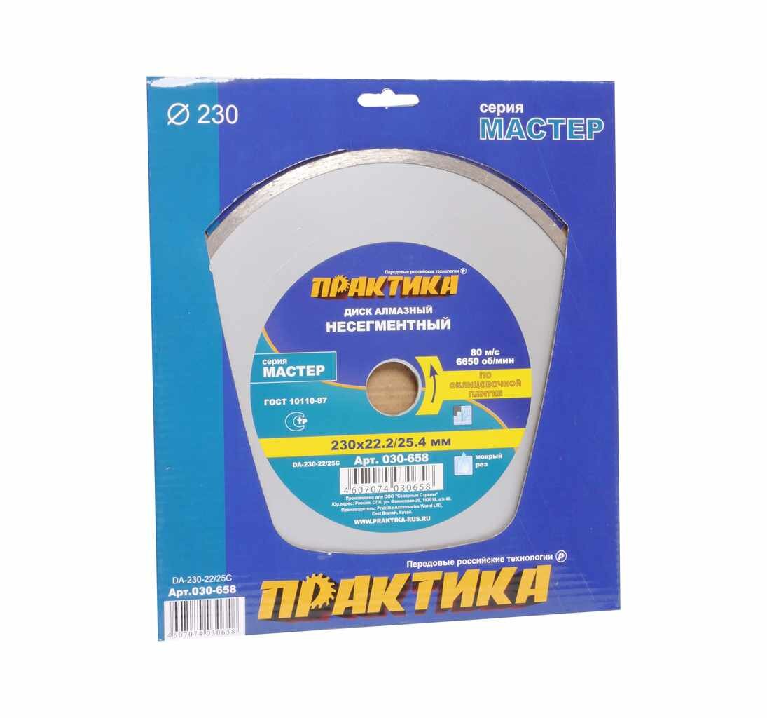 Диск алмазный ПРАКТИКА 030-658 несегментный "Мастер" 230 х 25,4/22 мм (1шт) коробка