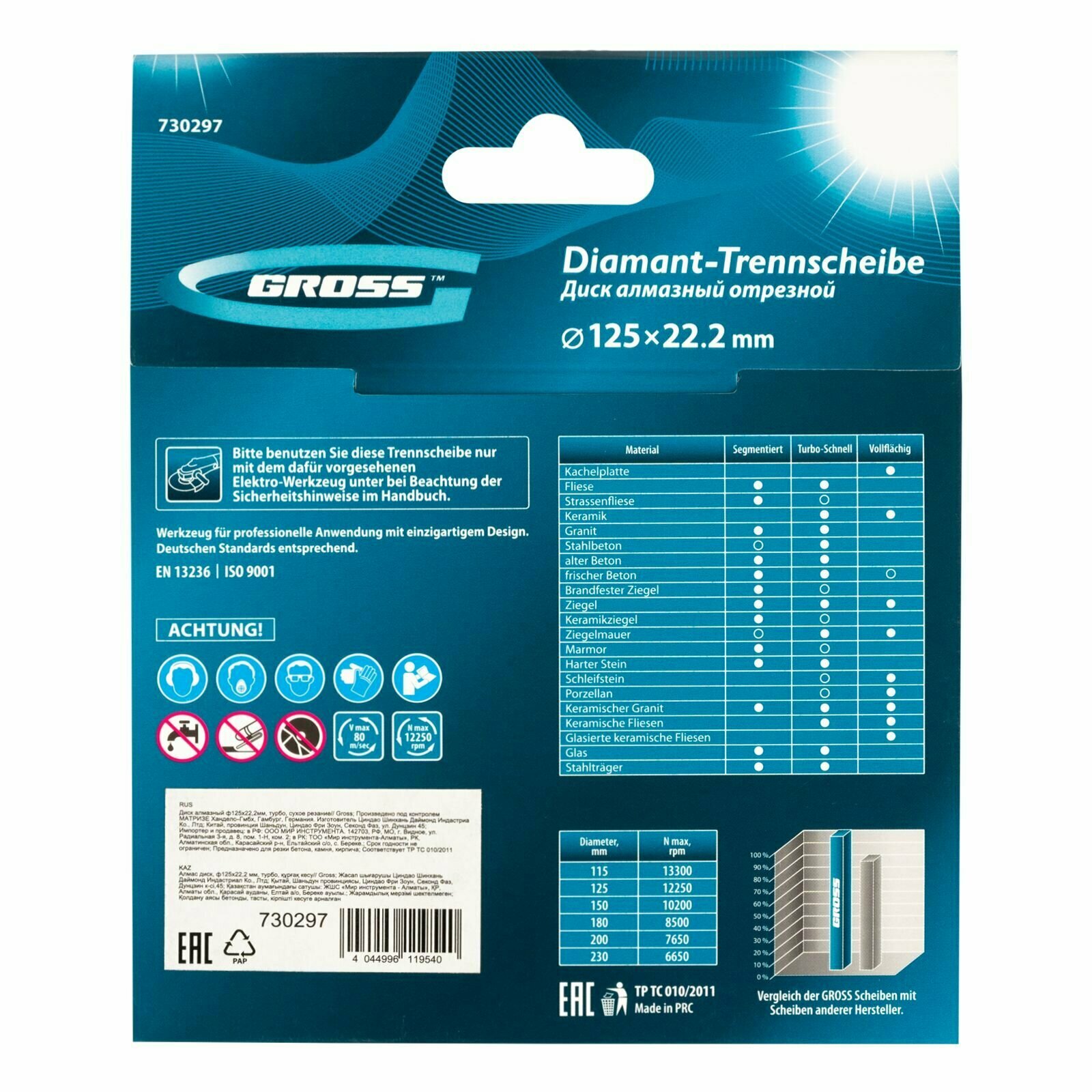 GROSS Диск алмазный, 125 х 22,2 мм, турбо, сухая резка Gross, ( 730297 )
