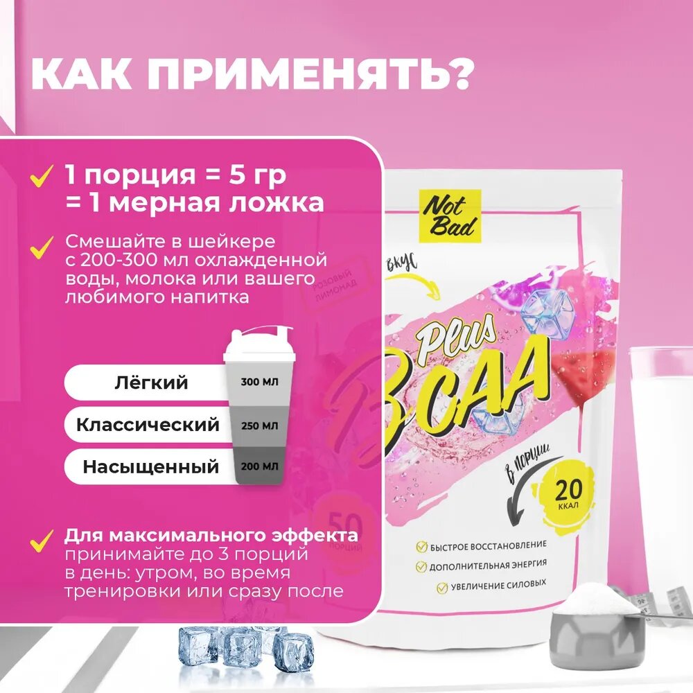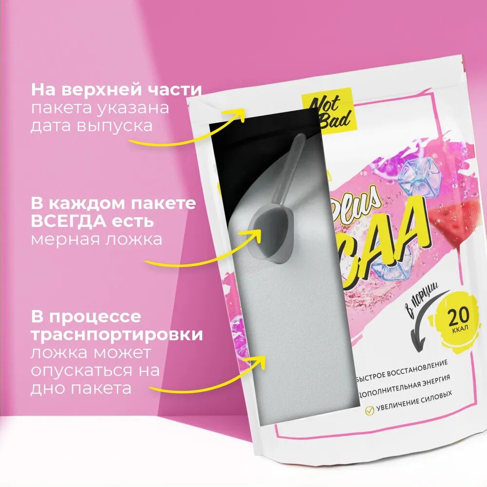 Аминокислоты комплекс NotBad BCAA 2:1:1 с глютамином, 250 гр, 50 порций, порошок, Розовый лимонад