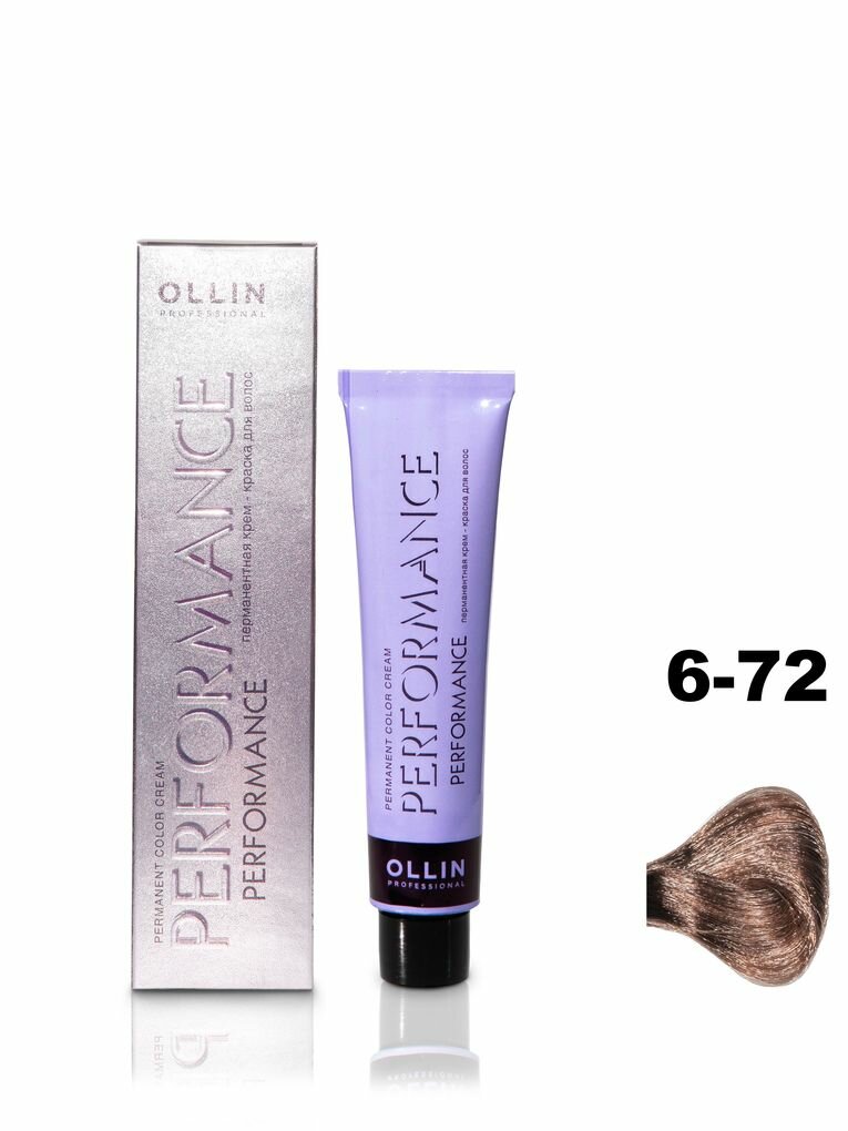 OLLIN, PERFORMANCE, Перманентная крем-краска №6/72, темно-русый коричнево-фиолетовый, 60 мл
