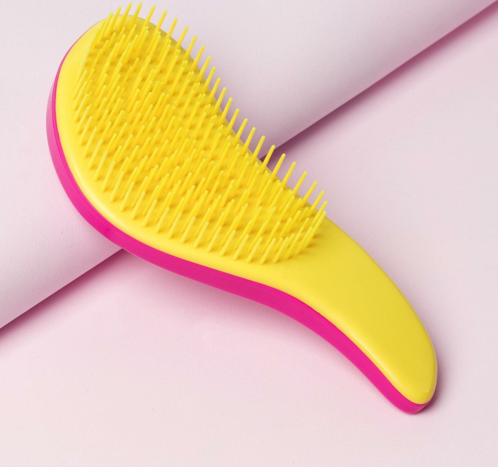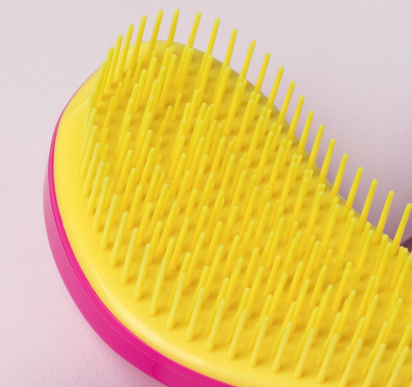 Расчёска массажная, 6 x 14.5 см, цвет розовый/жёлтый