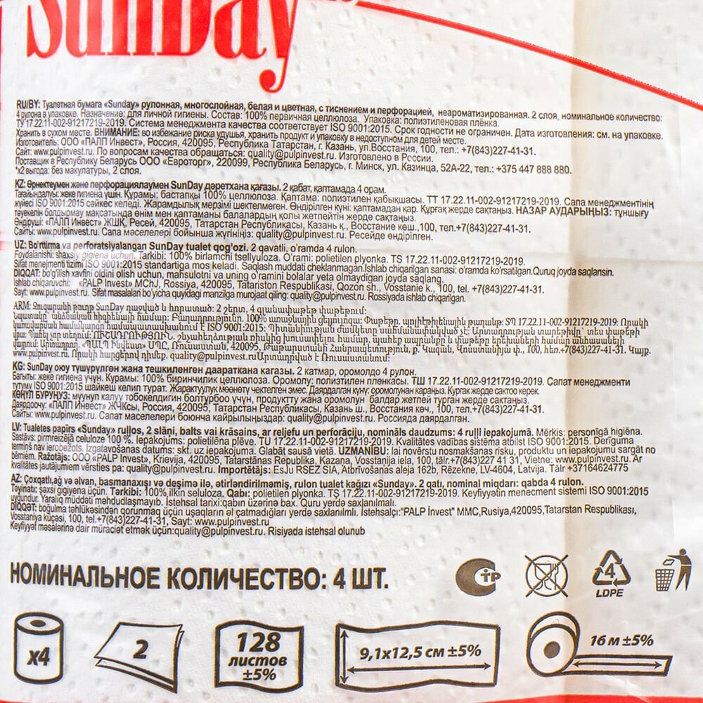 SUNDAY Туалетная бумага, 2-х слойная, белая, 4 штуки