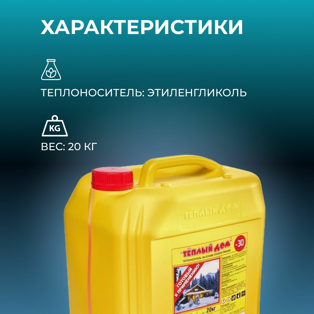 Купить Теплоноситель Тёплый дом-30 20 кг этиленгликоль с присадками 45% Ткр=-31 оС канистра Теплый дом
