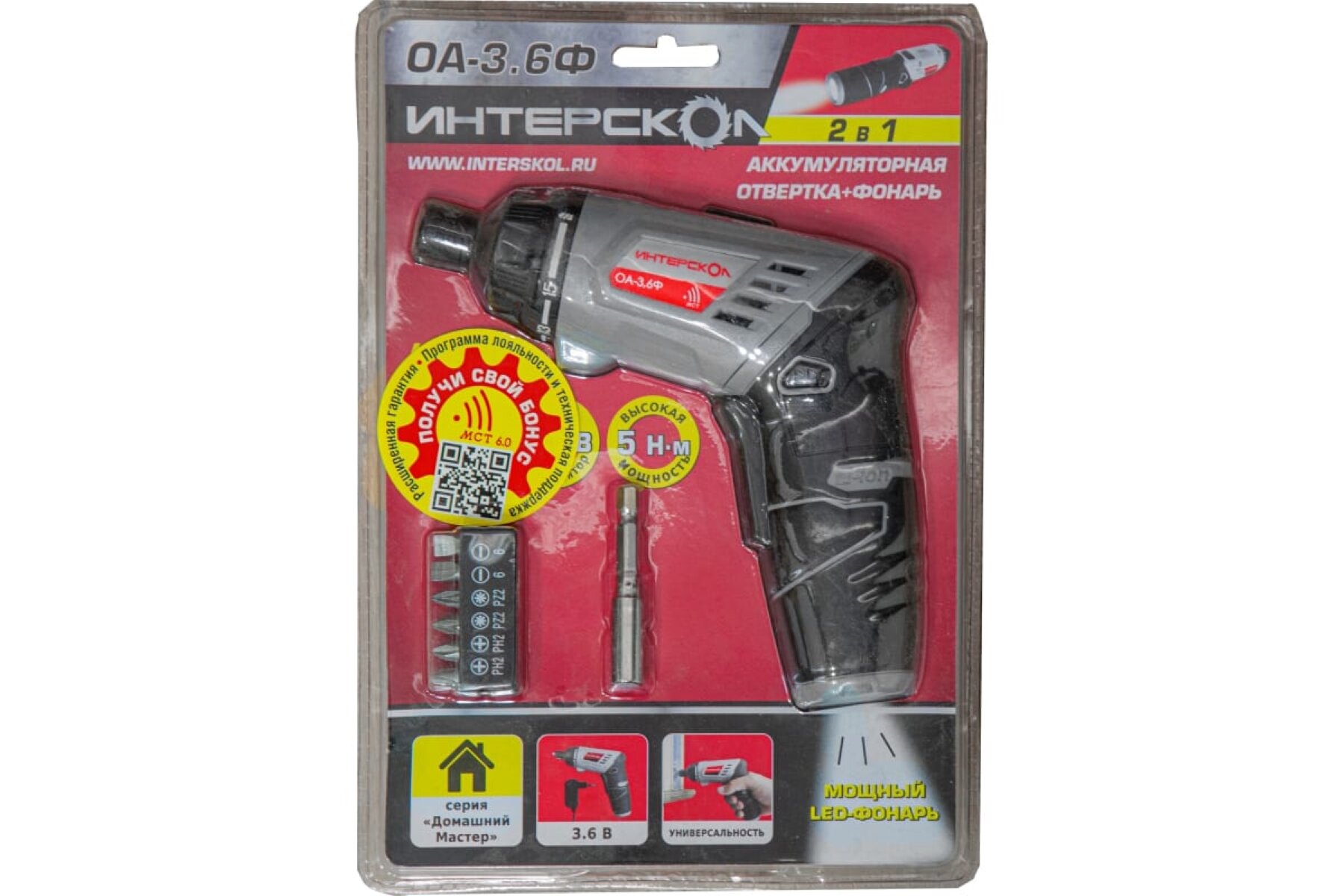 Аккумуляторная отвертка Интерскол ОА-3,6Ф с фонарем (блистер)