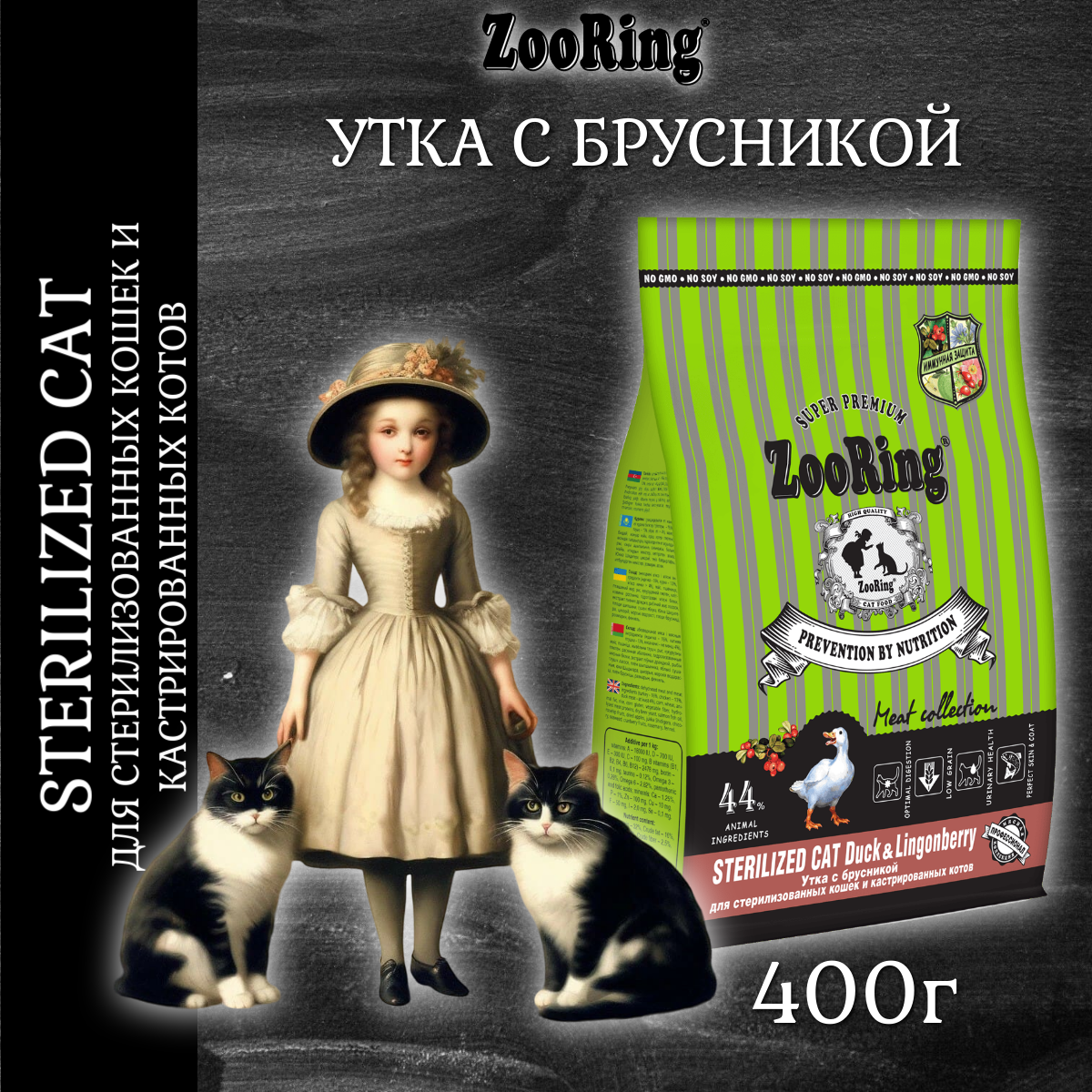 [34962] Корм ZooRing для кошек Sterilized Cat Turkey Lingonberry (Индейка с брусникой) 0,4 кг , 34962 (1 шт)