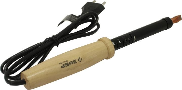 Электропаяльник с деревянной рукояткой, серия мастер Зубр 55405-100