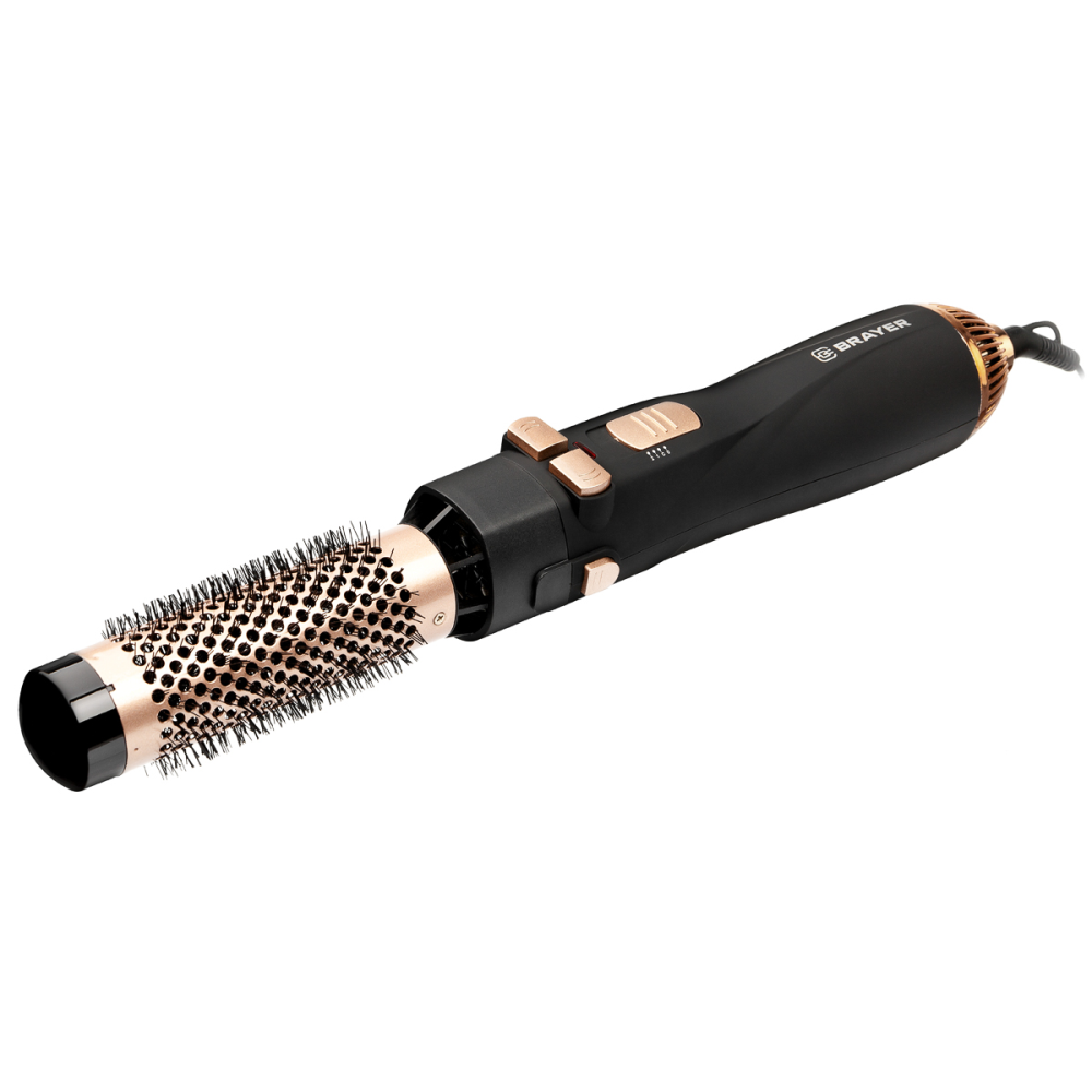 Фен-щетка для укладки волос BRAYER BR3132, 2 скорости, 3 насадки, цвет черный/золотистый
