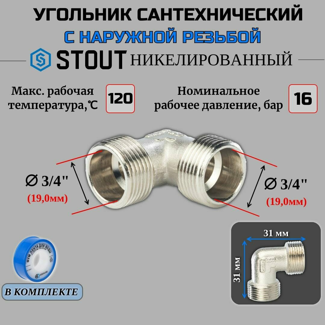 Угольник никелированный 3/4" НР, Stout SFT-0010-000034