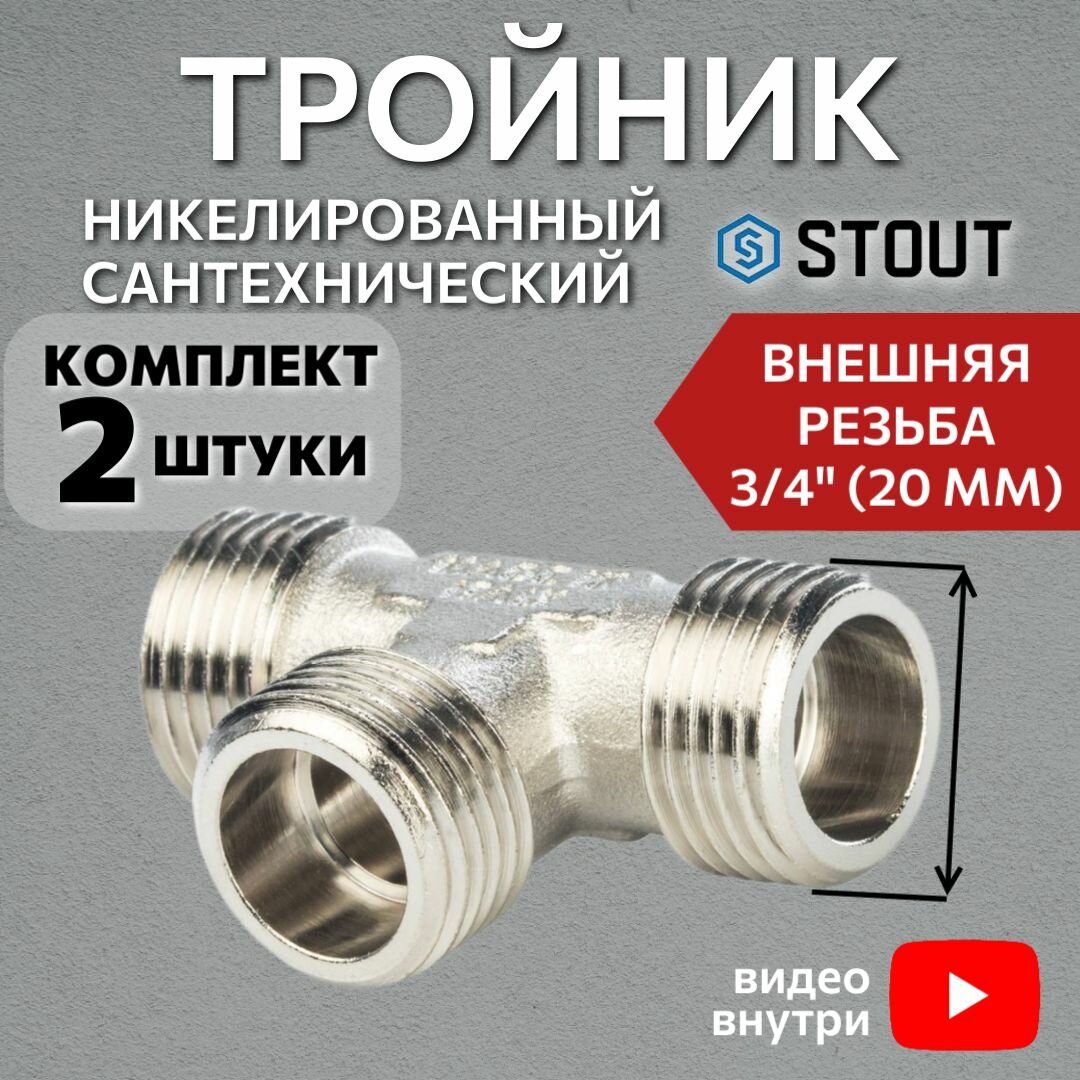 Тройник STOUT 3/4"х1/2"х3/4"ВВВ, переходной, латунь никелированная, арт.SFT-0022-341234
